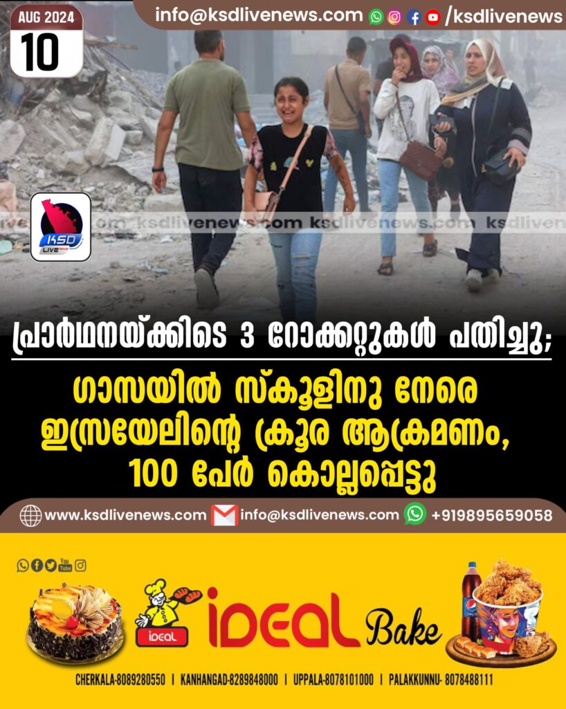 പ്രാർഥനയ്ക്കിടെ 3 റോക്കറ്റുകൾ പതിച്ചു; ഗാസയിൽ സ്കൂളിനു നേരെ ഇസ്രയേലിന്റെ ക്രൂര ആക്രമണം, 100 പേർ കൊല്ലപ്പെട്ടു