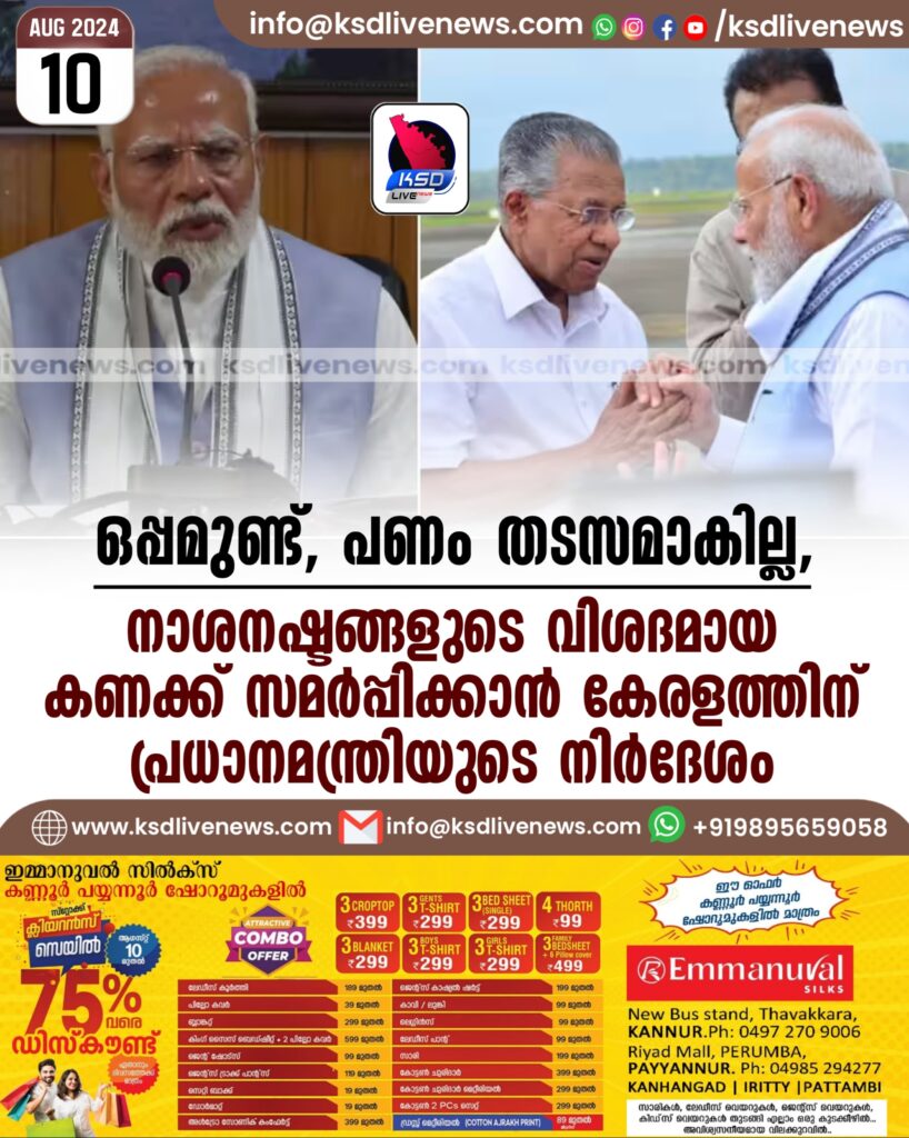 ഒപ്പമുണ്ട്, പണം തടസമാകില്ല, നാശനഷ്ടങ്ങളുടെ വിശദമായ കണക്ക് സമർപ്പിക്കാൻ കേരളത്തിന് പ്രധാനമന്ത്രിയുടെ നിര്ദേശം