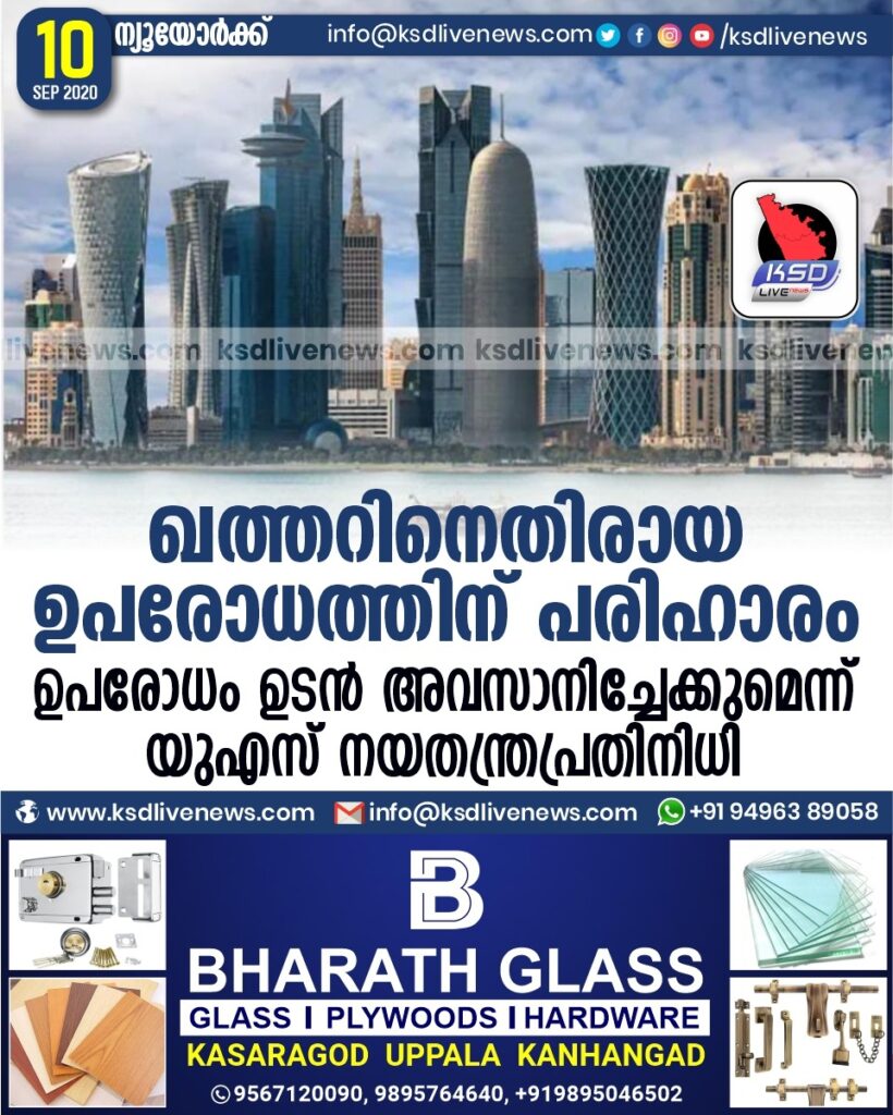 ഖത്തറിനെതിരായ ഉപരോധത്തിന് പരിഹാരം ; ഉപരോധം ഉടൻ അവസാനിച്ചേക്കുമെന്ന് യുഎസ് നയതന്ത്രപ്രതിനിധി
