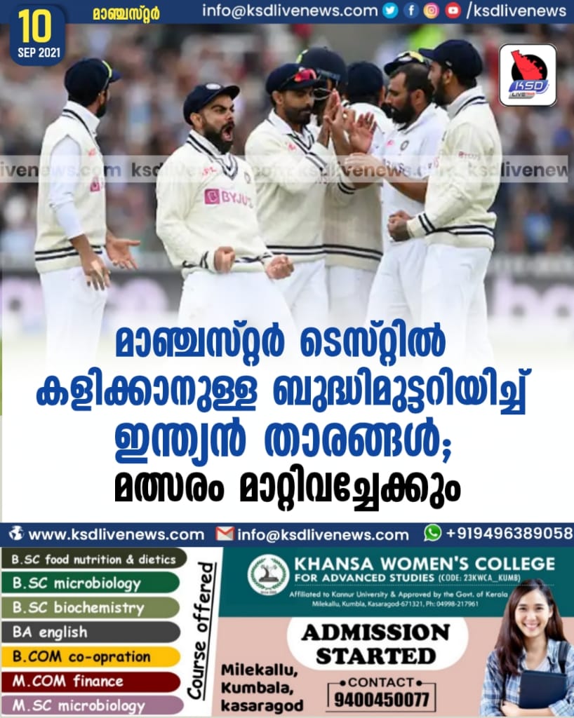 മാഞ്ചസ്റ്റര് ടെസ്റ്റില് കളിക്കാനുള്ള ബുദ്ധിമുട്ടറിയിച്ച് ഇന്ത്യന് താരങ്ങള്; മത്സരം മാറ്റിവച്ചേക്കും