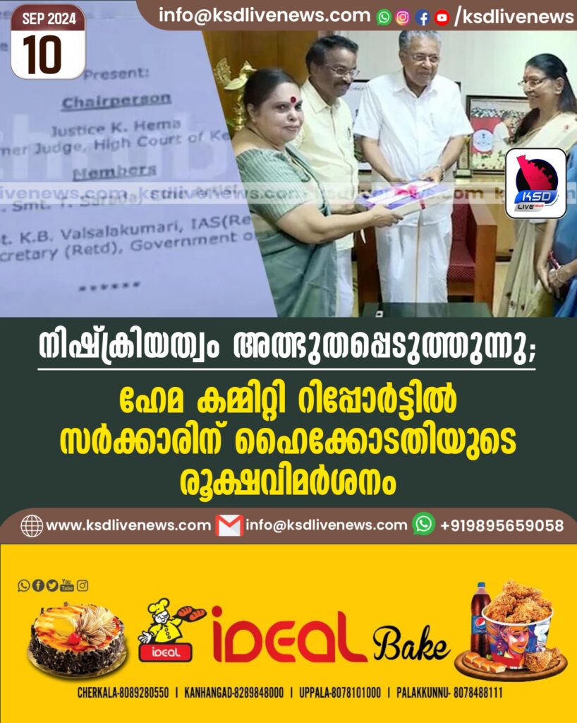 നിഷ്ക്രിയത്വം അത്ഭുതപ്പെടുത്തുന്നു; ഹേമ കമ്മിറ്റി റിപ്പോർട്ടിൽ സർക്കാരിന് ഹൈക്കോടതിയുടെ രൂക്ഷവിമർശനം