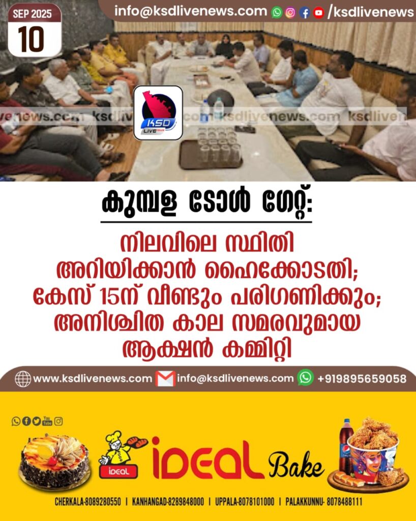 കുമ്പള ടോൾ ഗേറ്റ്; നിലവിലെ സ്ഥിതി അറിയിക്കാൻ ഹൈക്കോടതി; കേസ് 15ന് വീണ്ടും പരിഗണിക്കും; അനിശ്ചിത കാല സമരവുമായി ആക്ഷൻ കമ്മിറ്റി