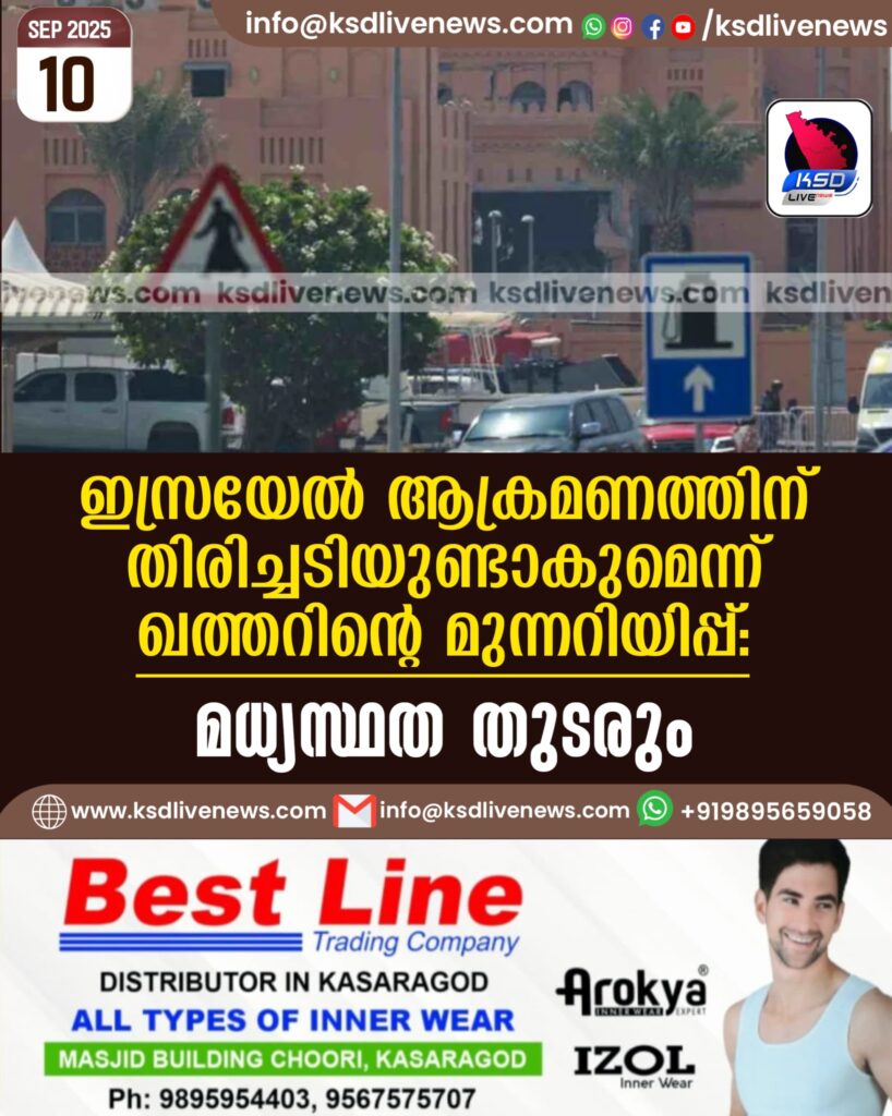 ഇസ്രയേല് ആക്രമണത്തിന് തിരിച്ചടിയുണ്ടാകുമെന്ന് ഖത്തറിന്റെ മുന്നറിയിപ്പ്: മധ്യസ്ഥത തുടരും
