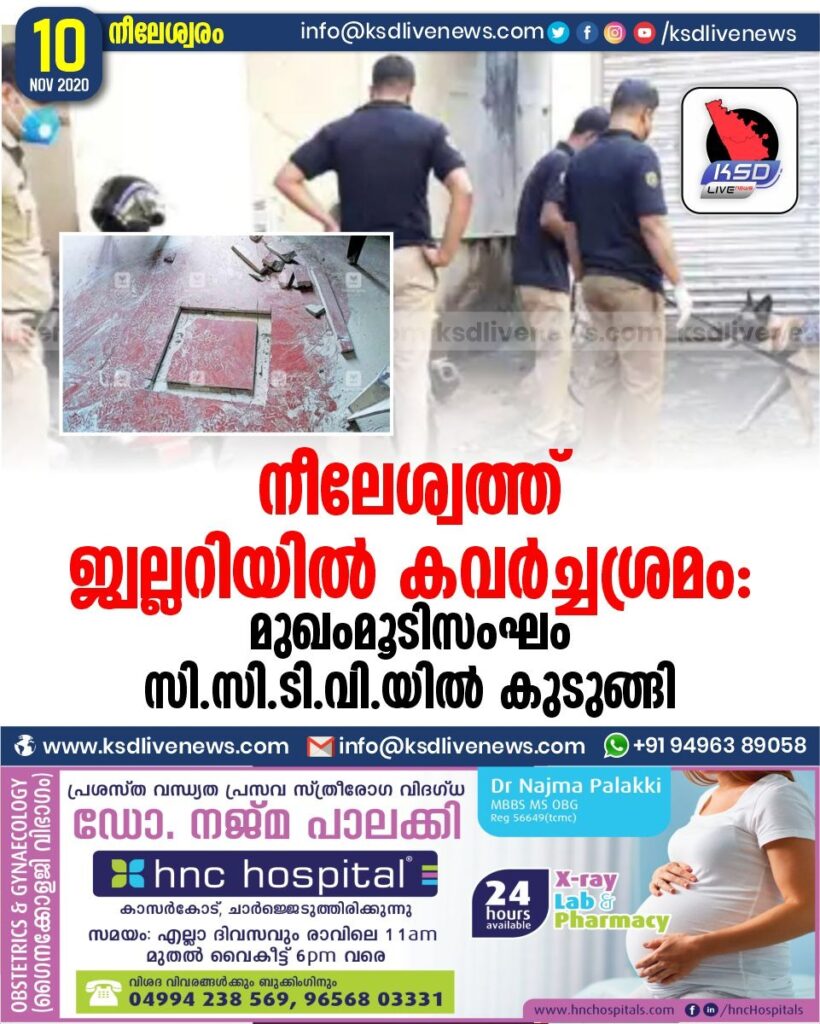 നീലേശ്വത്ത് ജ്വല്ലറിയിൽ കവർച്ചശ്രമം : മുഖംമൂടിസംഘം സി.സി.ടി.വി.യിൽ കുടുങ്ങി
