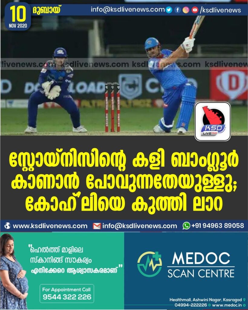ദുബായ്: ഓപ്പണിങ്ങില്‍ പൃഥ്വി ഷായ്ക്ക് പകരം സ്റ്റൊയ്‌നിസിനെ ഓപ്പണിങ്ങിലേക്ക് കൊണ്ടുവന്ന നീക്കമാണ് ഡല്‍ഹി ക്യാപിറ്റല്‍സിന് നിര്‍ണായകമായത്. സ്റ്റൊയ്‌നിസിനെ നഷ്ടപ്പെടുത്തിയ ബാംഗ്ലൂര്‍ വിലയറിയാന്‍ പോവുന്നതേയുള്ളു എന്നാണ് ഇതിഹാസ താരം ബ്രയാന്‍ ലാറ ഇപ്പോള്‍ പറയുന്നത്.