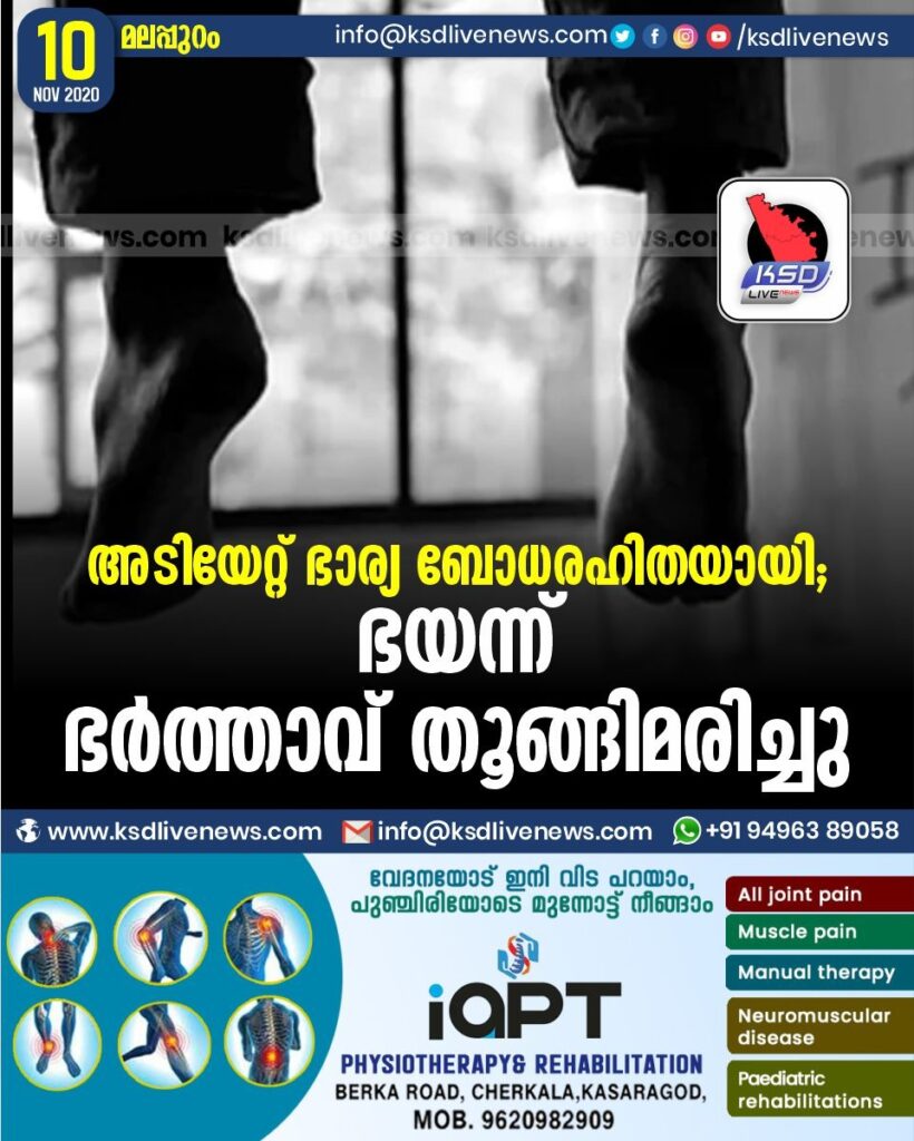 അടിയേറ്റ് ഭാര്യ ബോധരഹിതയായി ; ഭയന്ന് ഭർത്താവ് തൂങ്ങിമരിച്ചു