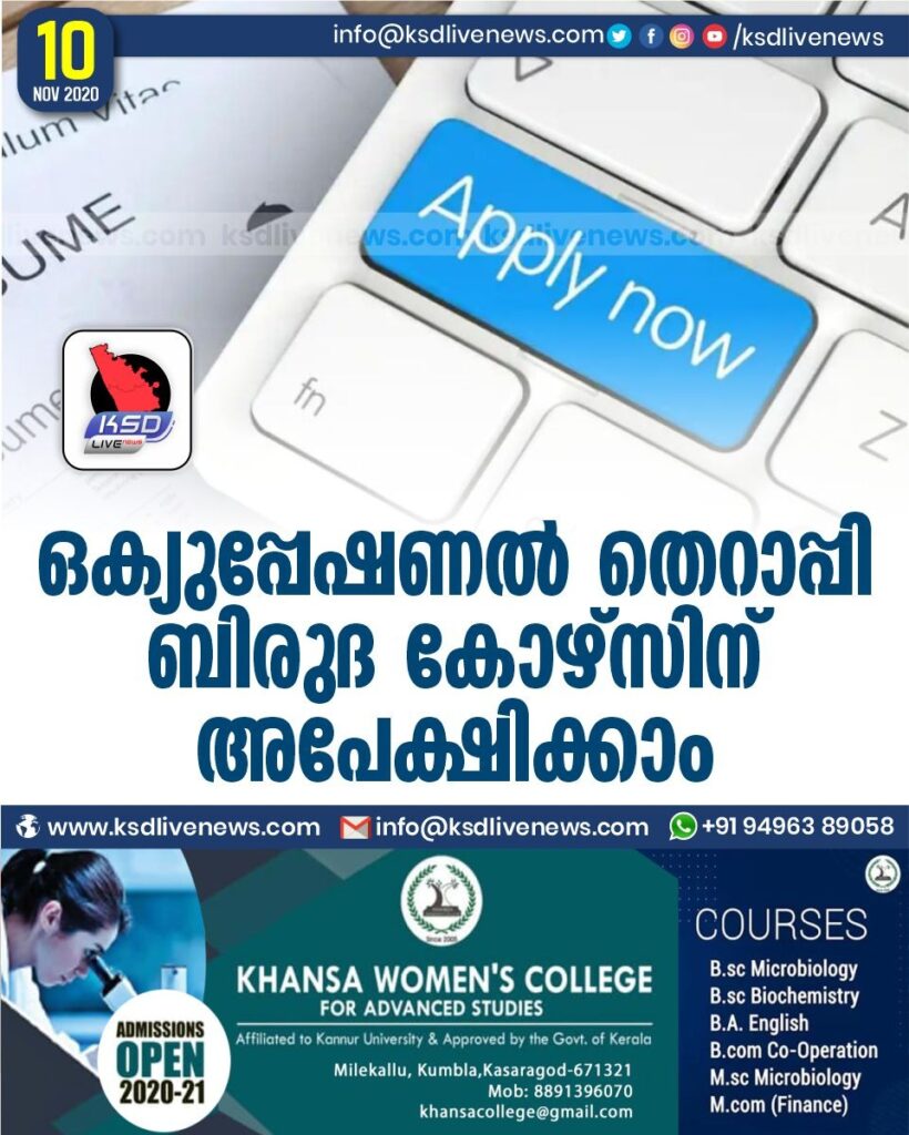 ഒക്യുപ്പേഷണൽ തെറാപ്പി ബിരുദ കോഴ്സിന് അപേക്ഷിക്കാം
