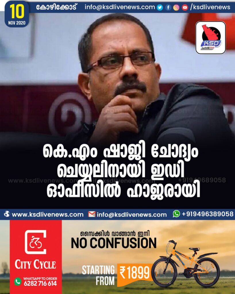 കെ.എം ഷാജി ചോദ്യം ചെയ്യലിനായി ഇഡി ഓഫീസിൽ ഹാജരായി