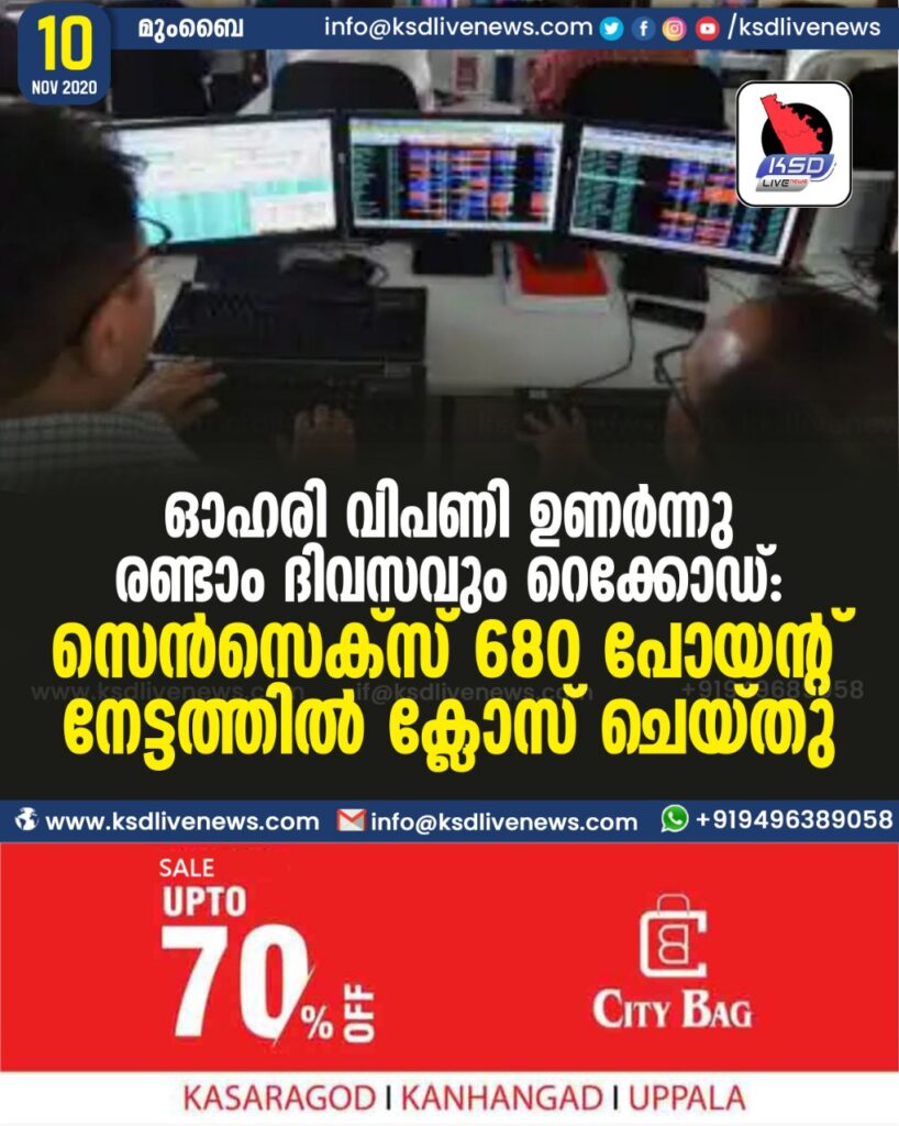 രണ്ടാം ദിവസവും റെക്കോഡ്: സെന്സെക്സ് 680 പോയന്റ് നേട്ടത്തില് ക്ലോസ് ചെയ്തു