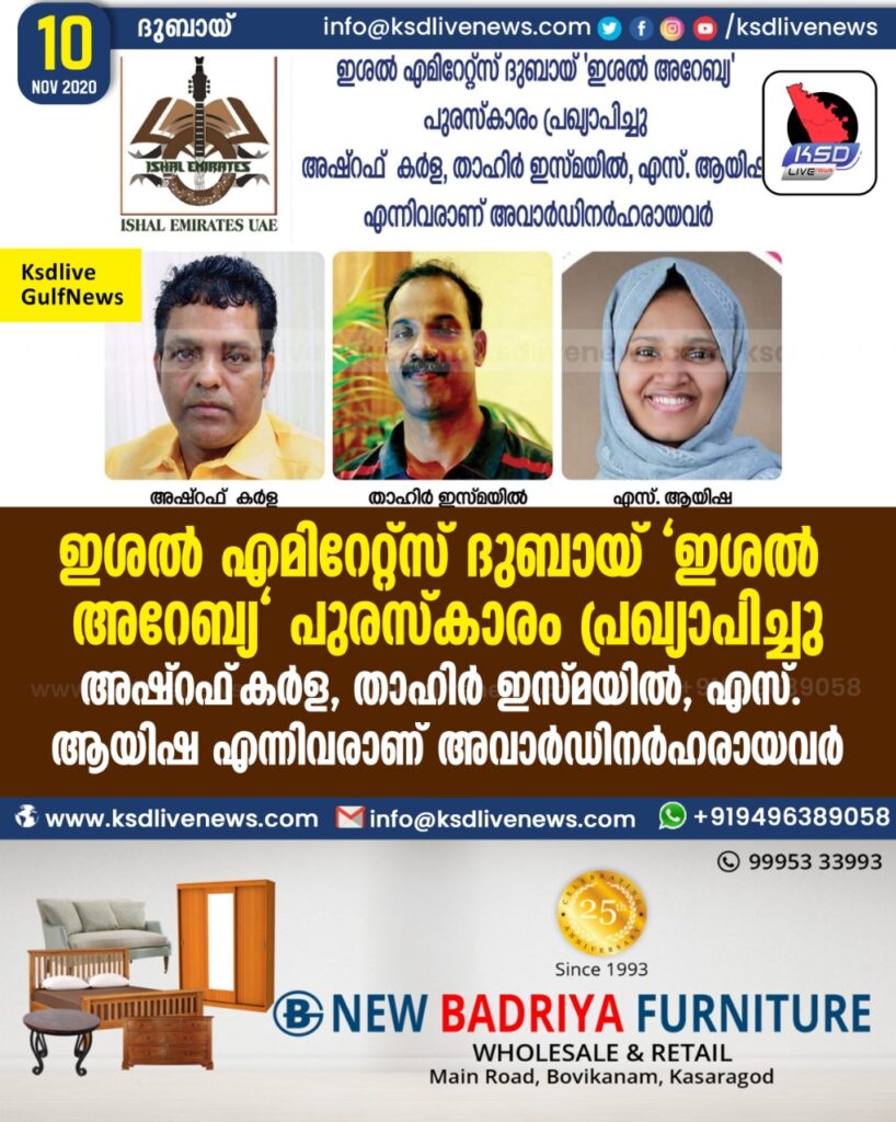 ഇശൽ എമിറേറ്റ്സ് ദുബായ് “ഇശൽ അറേബ്യ” പുരസ്കാരം പ്രഖ്യാപിച്ചു