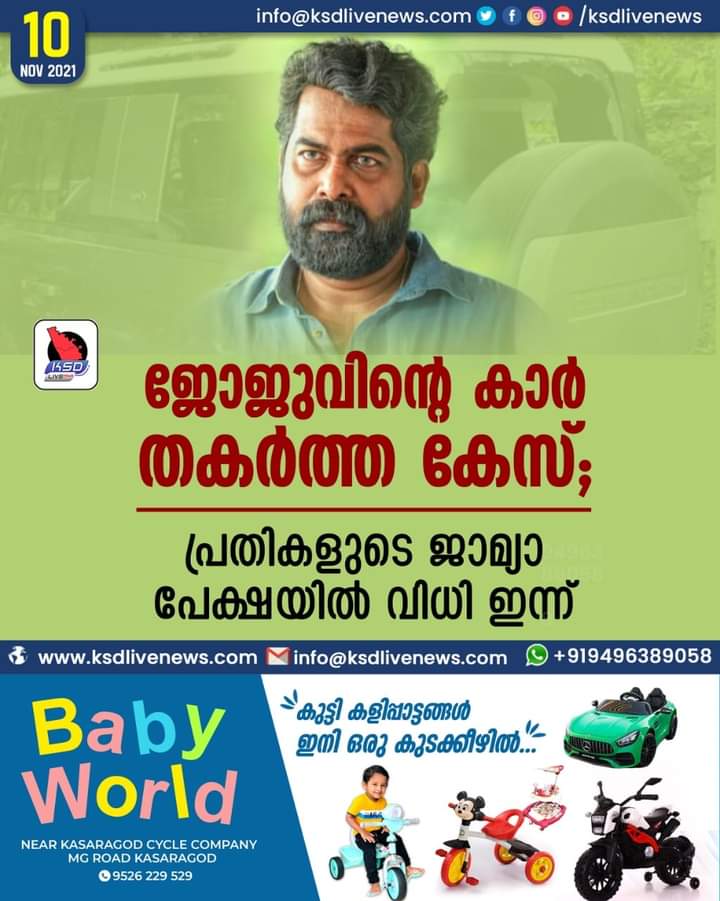 ജോജുവിന്റെ കാര്‍ തകര്‍ത്ത കേസ്; പ്രതികളുടെ ജാമ്യാപേക്ഷയില്‍ വിധി ഇന്ന്