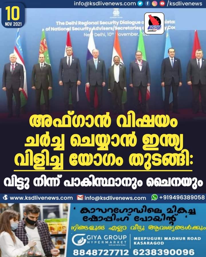 അഫ്ഗാൻ വിഷയം ചർച്ച ചെയ്യാൻ ഇന്ത്യ വിളിച്ച യോഗം തുടങ്ങി: വിട്ടു നിന്ന് പാകിസ്ഥാനും ചൈനയും