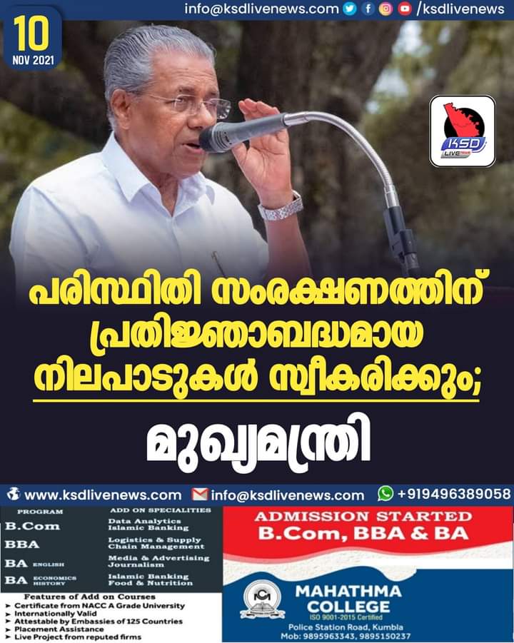 പരിസ്ഥിതി സംരക്ഷണത്തിന് പ്രതിജ്ഞാബദ്ധമായ നിലപാടുകള്‍ സ്വീകരിക്കും; മുഖ്യമന്ത്രി