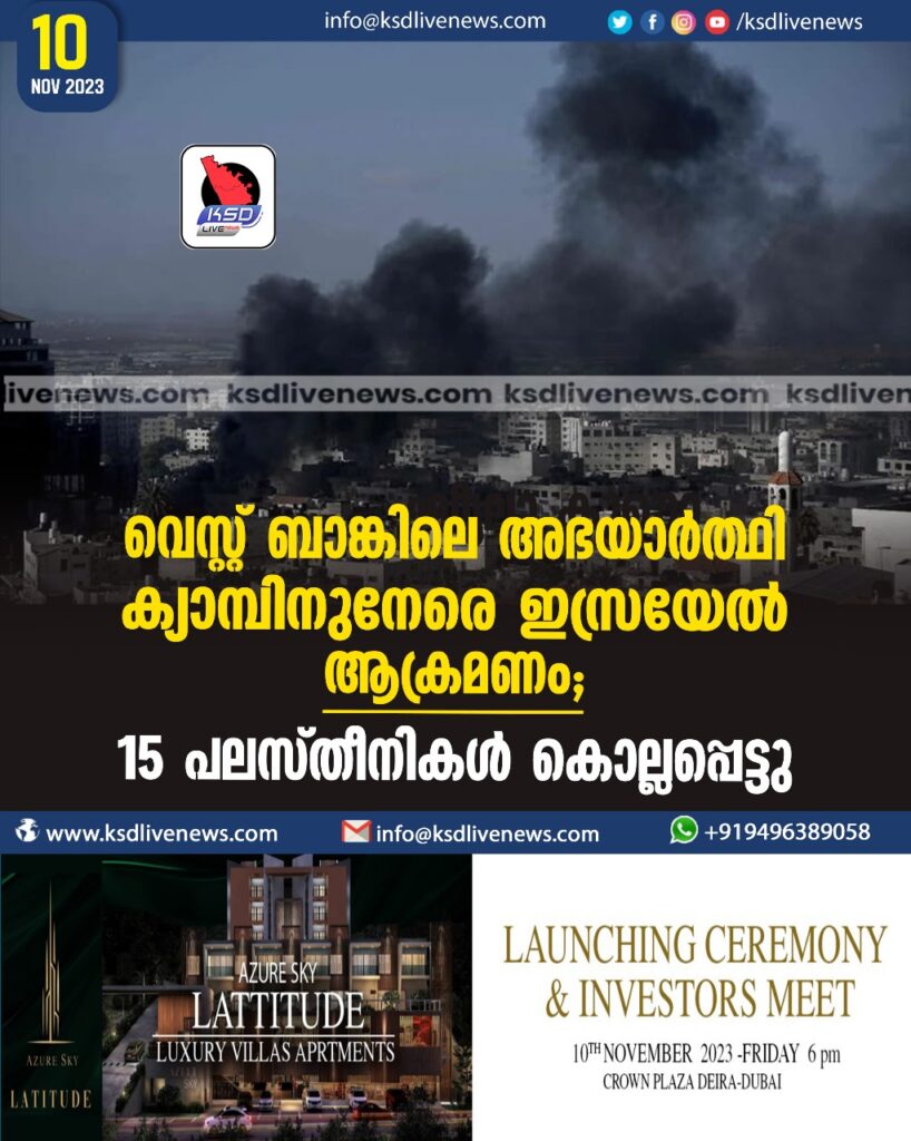 വെസ്റ്റ് ബാങ്കിലെ അഭയാര്ത്ഥി ക്യാമ്പിനുനേരെ ഇസ്രയേല് ആക്രമണം; 15 പലസ്തീനികള് കൊല്ലപ്പെട്ടു