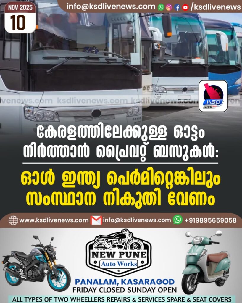 കേരളത്തിലേക്കുള്ള ഓട്ടം നിര്ത്താന് പ്രൈവറ്റ് ബസുകള്: ഓള് ഇന്ത്യ പെര്മിറ്റെങ്കിലും സംസ്ഥാന നികുതി വേണം