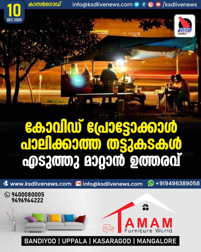 കോവിഡ് പ്രോട്ടോക്കാൾ പാലിക്കാത്ത തട്ടുകടകൾ എടുത്തു മാറ്റാൻ ഉത്തരവ്
