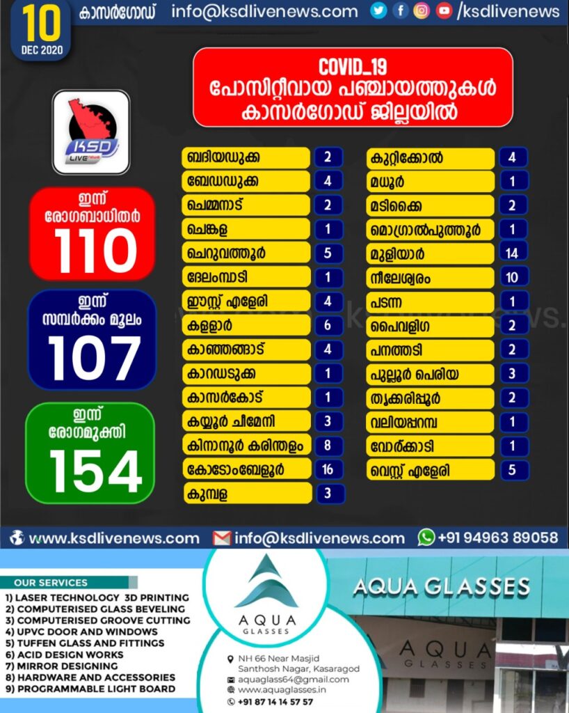 കാസർഗോഡ് ജില്ലയിൽ ഇന്ന് കോവിഡ് സ്ഥിരീകരിച്ചവരുടെ തദ്ദേശ സ്വയംഭരണ സ്ഥാപനം തിരിച്ചുള്ള കണക്ക്