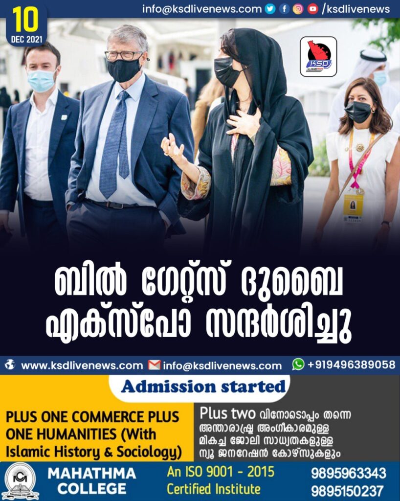ബില് ഗേറ്റ്സ് ദുബൈ എക്സ്പോ സന്ദര്ശിച്ചു