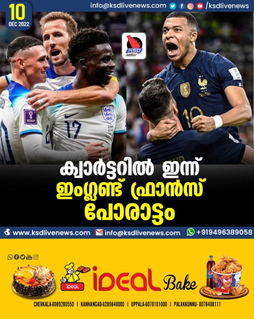 ക്വാര്ട്ടറില് ഇന്ന് ഇംഗ്ലണ്ട്-ഫ്രാന്സ് പോരാട്ടം