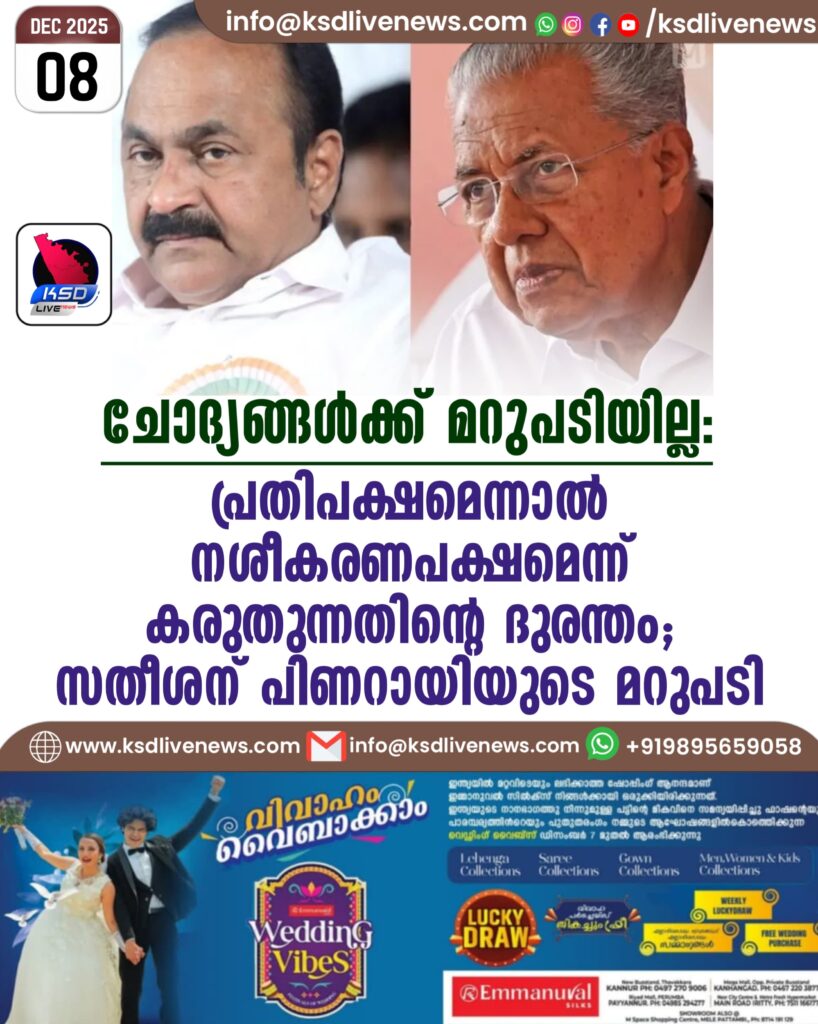 ചോദ്യങ്ങൾക്ക് മറുപടിയില്ല, പ്രതിപക്ഷമെന്നാൽ നശീകരണപക്ഷമെന്ന് കരുതുന്നതിന്റെ ദുരന്തം; സതീശന് പിണറായിയുടെ മറുപടി