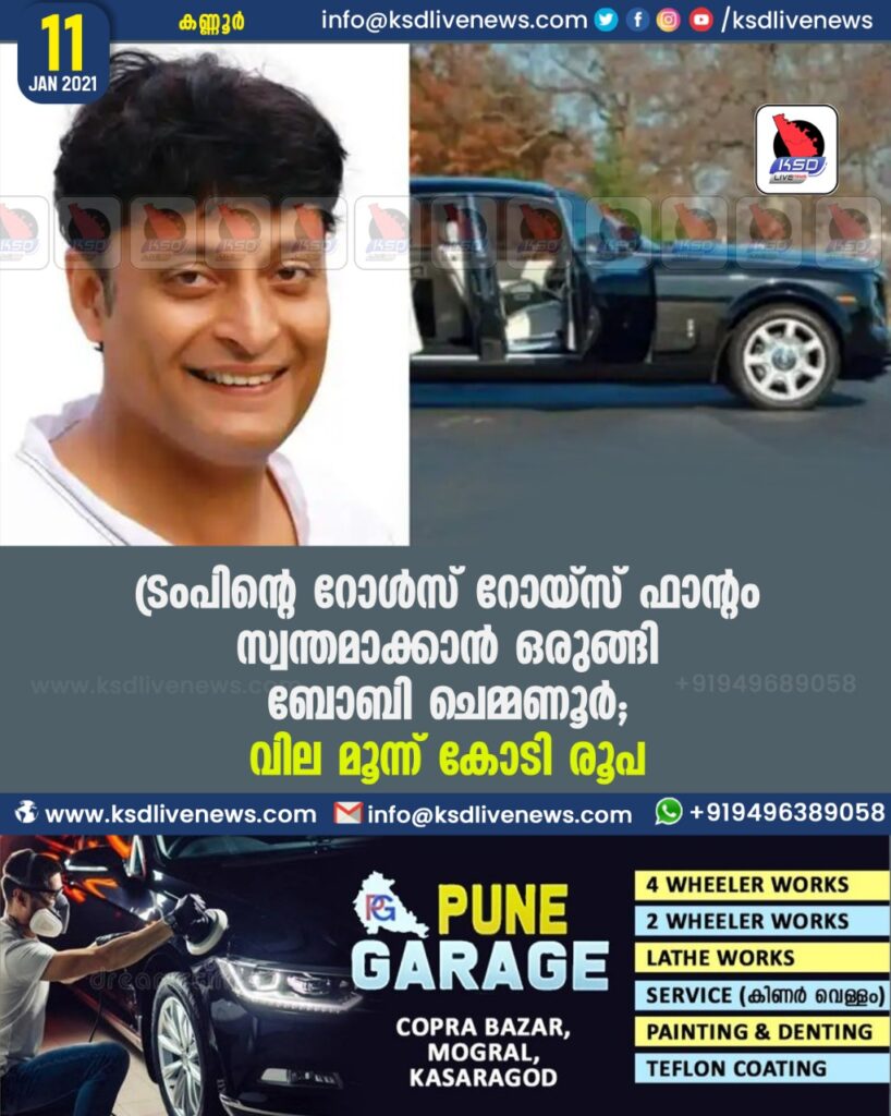ട്രംപിന്റെ റോൾസ് റോയ്സ് ഫാന്റം സ്വന്തമാക്കാൻ ഒരുങ്ങി ബോബി ചെമ്മണൂർ ; വില മൂന്ന് കോടി രൂപ