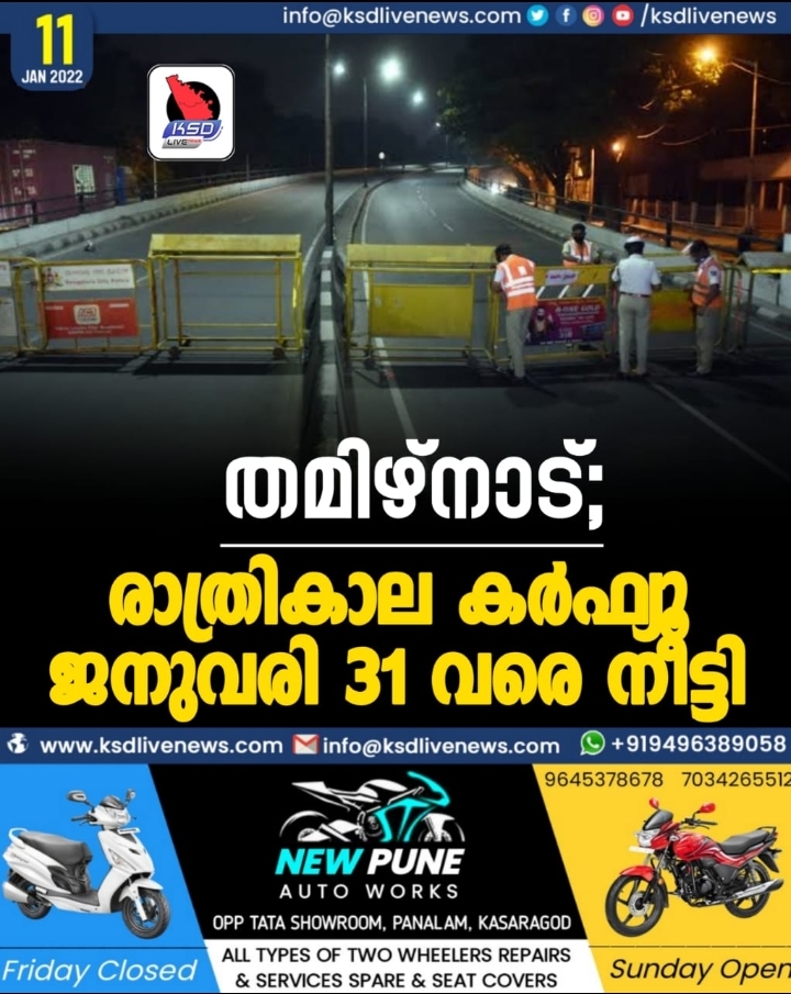 തമിഴ്നാട്; രാത്രികാല കര്‍ഫ്യൂ ജനുവരി 31 വരെ നീട്ടി