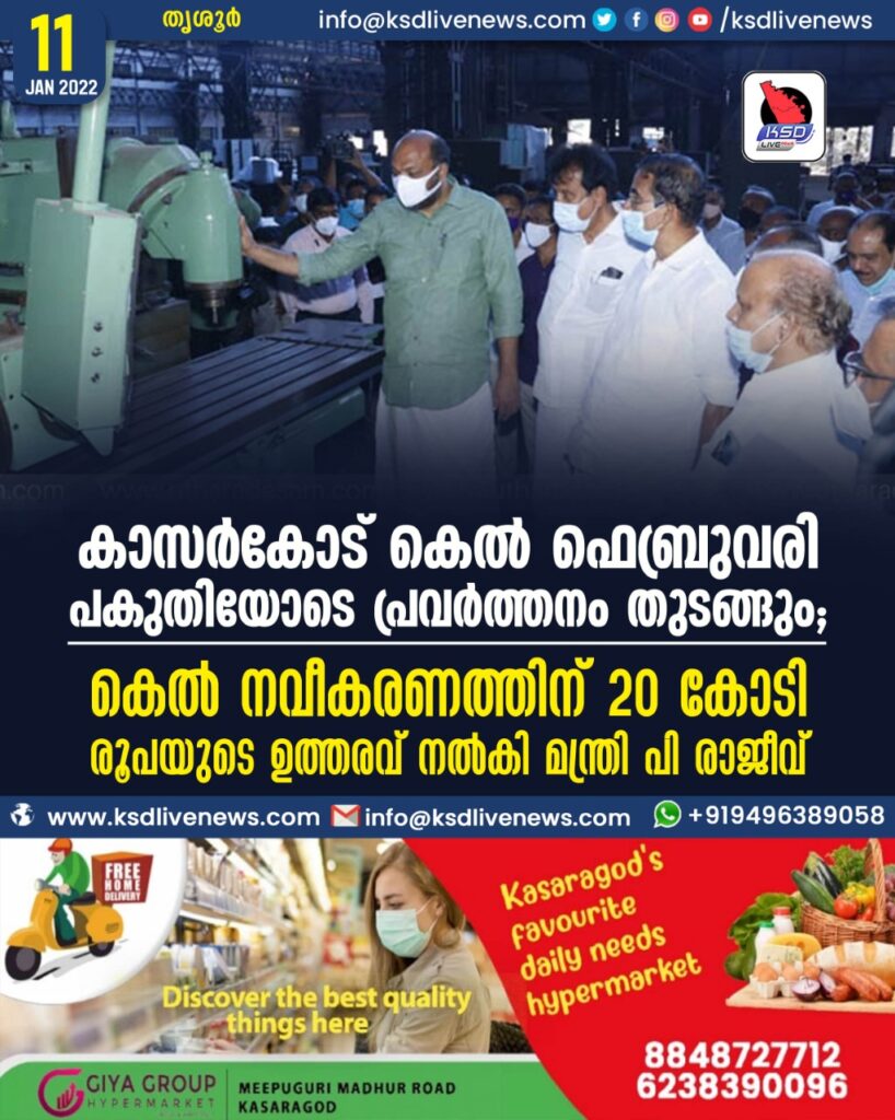 കാസര്‍കോട് കെല്‍ ഫെബ്രുവരി പകുതിയോടെ പ്രവര്‍ത്തനം തുടങ്ങും; കെല്‍ നവീകരണത്തിന് 20 കോടി രൂപയുടെ ഉത്തരവ് നല്‍കി മന്ത്രി പി രാജീവ്