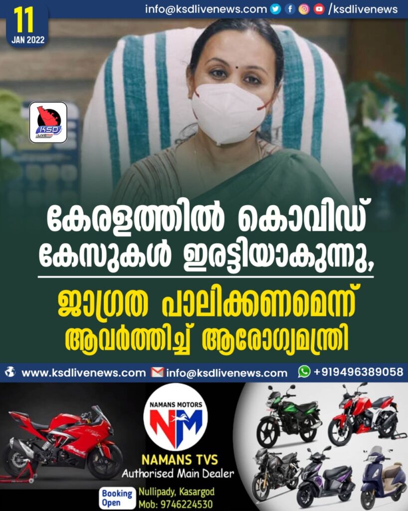 കേരളത്തില്‍ കൊവിഡ് കേസുകള്‍ ഇരട്ടിയാകുന്നു, ജാഗ്രത പാലിക്കണമെന്ന് ആവര്‍ത്തിച്ച്‌ ആരോഗ്യമന്ത്രി