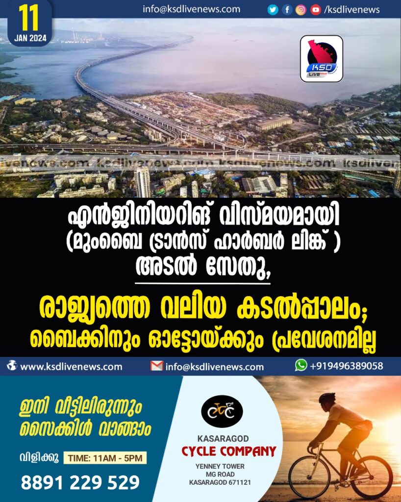 എന്ജിനിയറിങ് വിസ്മയമായി (മുംബൈ ട്രാൻസ് ഹാർബർ ലിങ്ക്) അടല് സേതു, രാജ്യത്തെ വലിയ കടല്പ്പാലം; ബൈക്കിനും ഓട്ടോയ്ക്കും പ്രവേശനമില്ല
