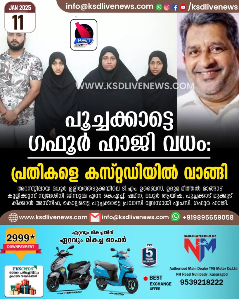 പൂച്ചക്കാട്ടെ ഗഫൂർ ഹാജി വധം: പ്രതികളെ കസ്റ്റഡിയിൽ വാങ്ങി