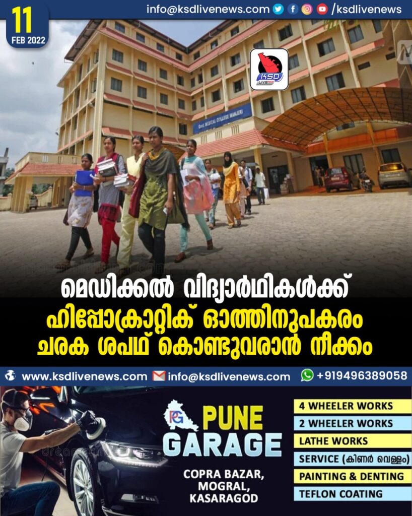 മെഡിക്കല് വിദ്യാര്ഥികള്ക്ക് ഹിപ്പോക്രാറ്റിക് ഓത്തി’നു പകരം ചരക ശപഥ് കൊണ്ടുവരാന് നീക്കം