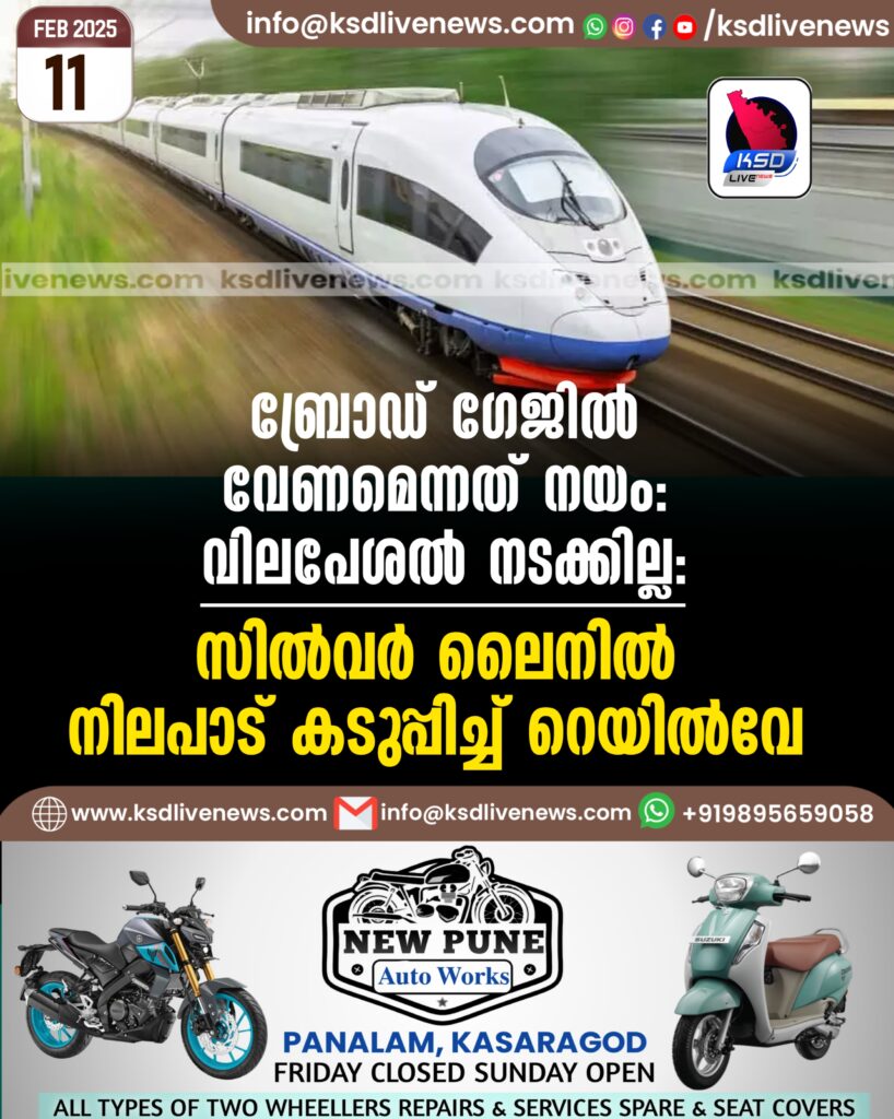 ബ്രോഡ് ഗേജിൽ വേണമെന്നത് നയം: വിലപേശൽ നടക്കില്ല: സിൽവർ ലൈനിൽ നിലപാട് കടുപ്പിച്ച് റെയിൽവേ