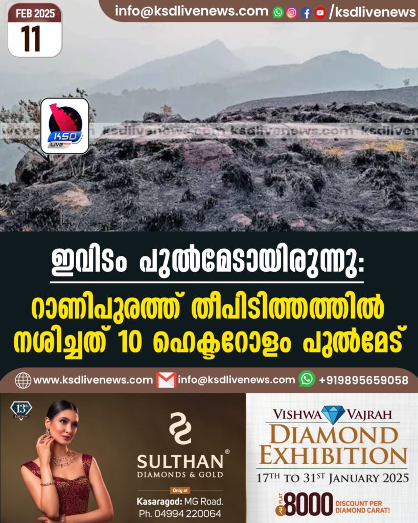 ഇവിടം പുൽമേടായിരുന്നു: റാണിപുരത്ത് തീപിടിത്തത്തിൽ നശിച്ചത് 10 ഹെക്ടറോളം പുൽമേട്