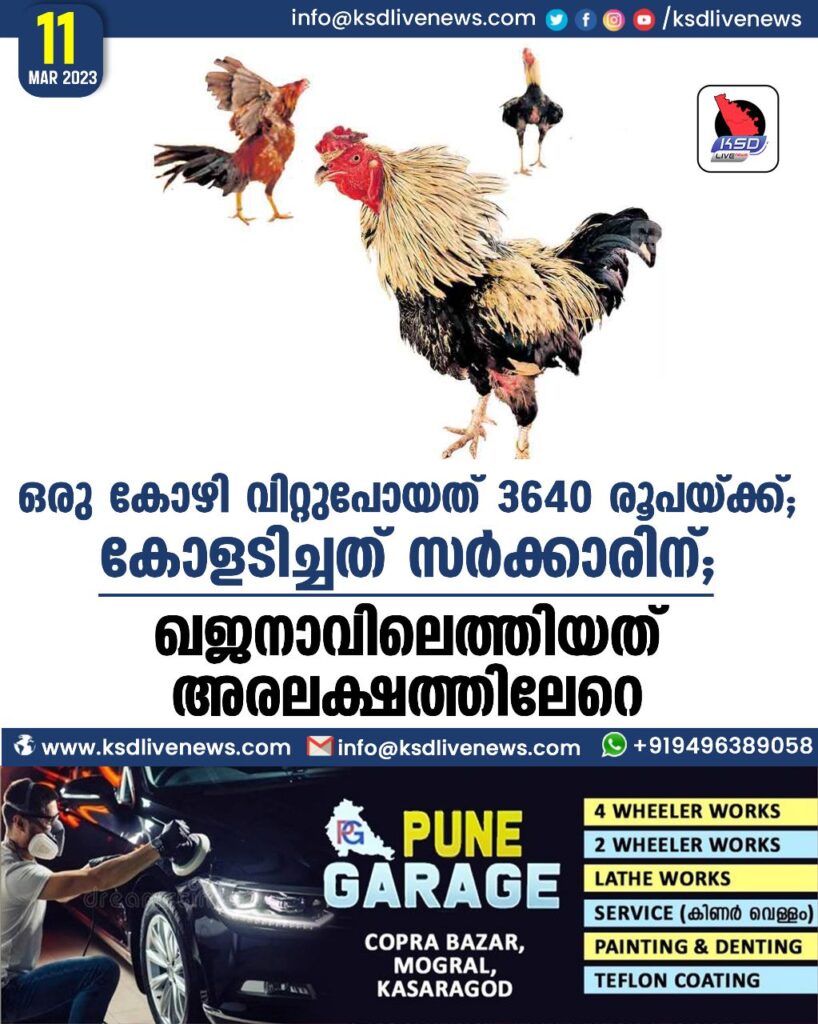 ഒരു കോഴി വിറ്റുപോയത് 3640 രൂപയ്ക്ക്; കോളടിച്ചത് സർക്കാരിന്, ഖജനാവിലെത്തിയത് അരലക്ഷത്തിലേറെ
