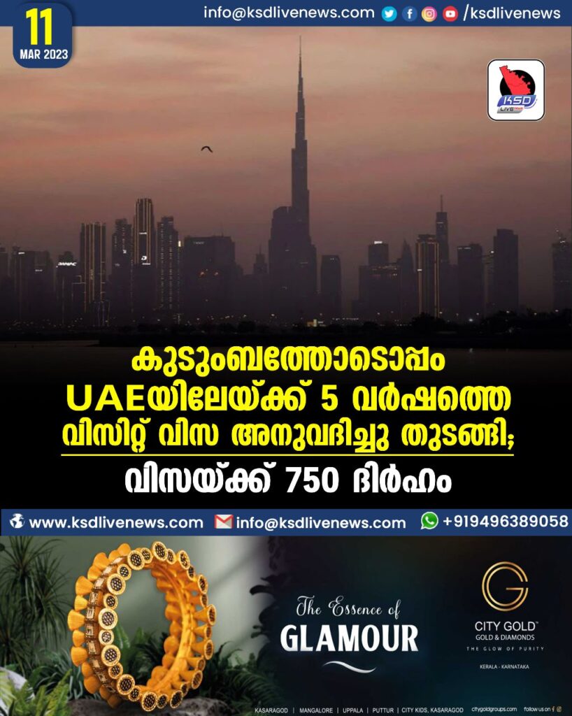 കുടുംബത്തോടൊപ്പം UAE-യിലേയ്ക്ക് 5 വർഷത്തെ വിസിറ്റ് വിസ അനുവദിച്ചു തുടങ്ങി ;വിസയ്ക്ക് 750 ദിര്ഹം