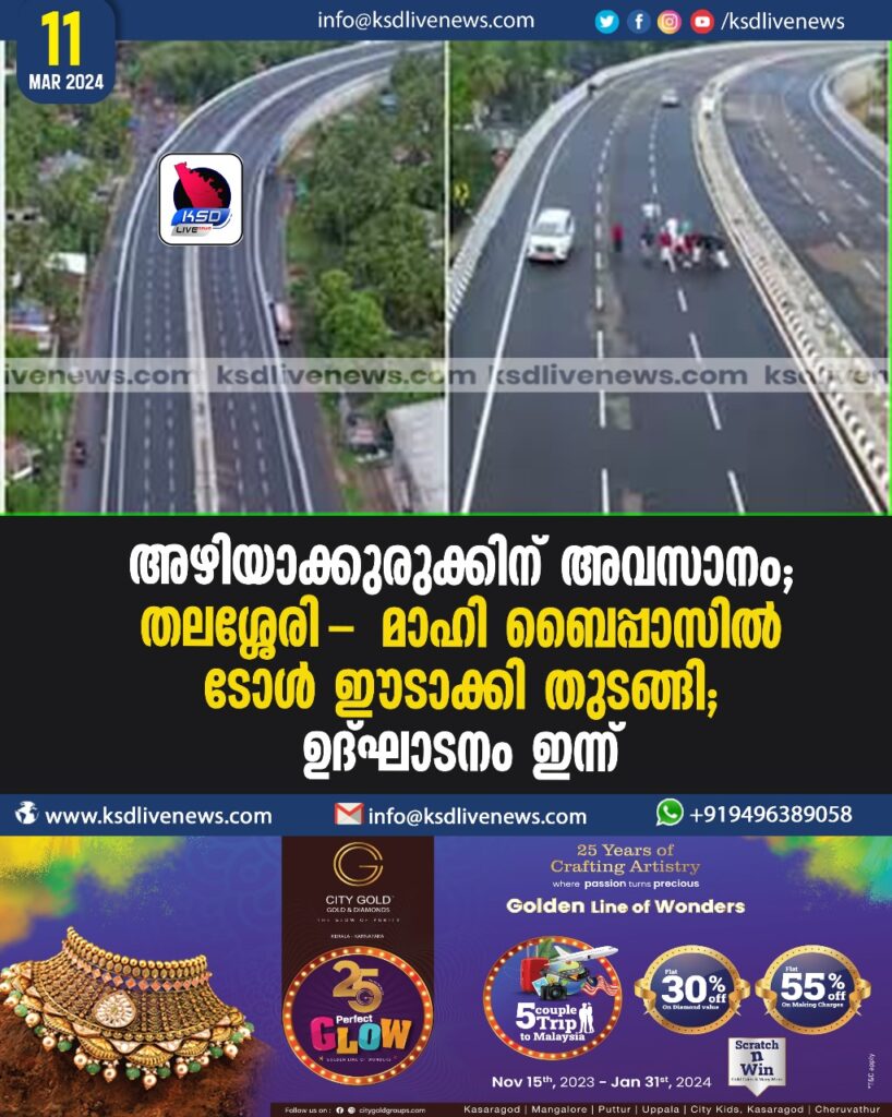 അഴിയാക്കുരുക്കിന് അവസാനം; തലശ്ശേരി- മാഹി ബൈപ്പാസിൽ ടോള് ഈടാക്കി തുടങ്ങി, ഉദ്ഘാടനം ഇന്ന്