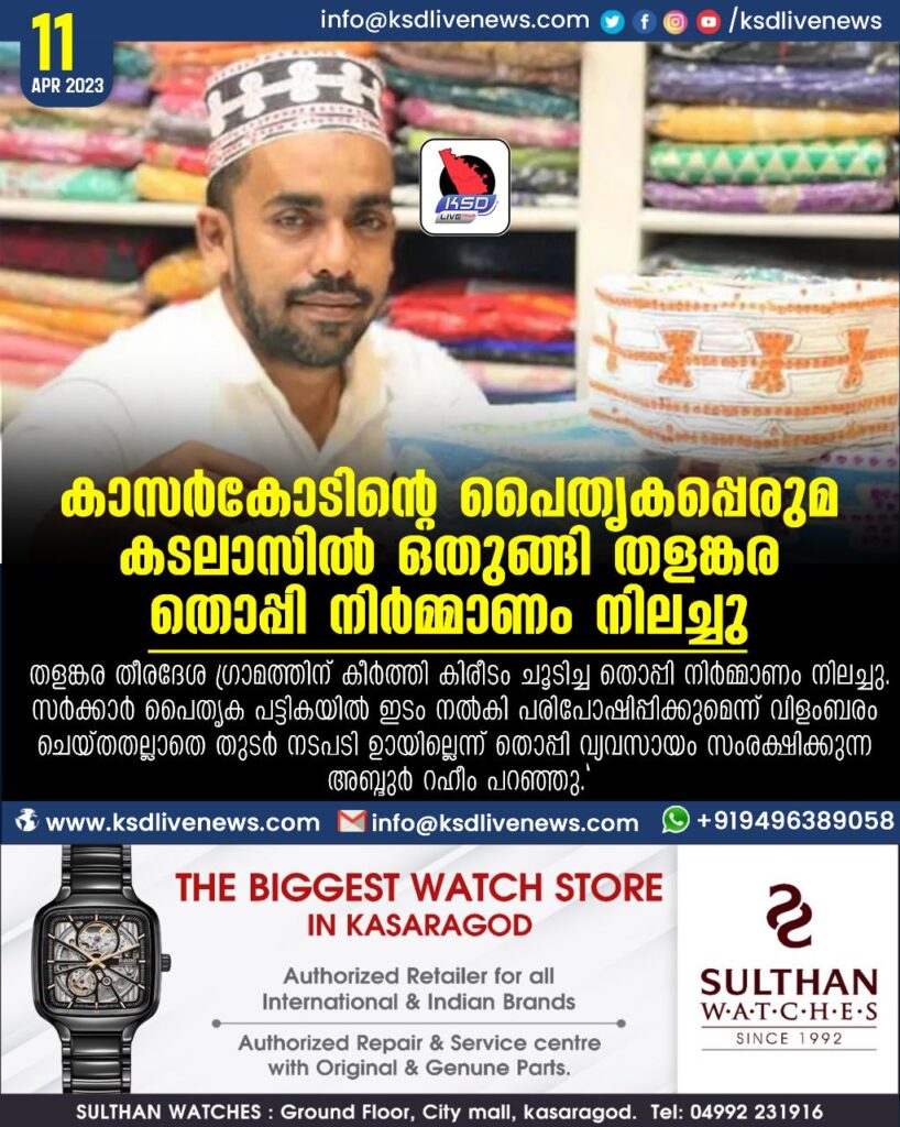 കാസർകോടിന്റെ പൈതൃകപ്പെരുമ കടലാസിൽ ഒതുങ്ങി തളങ്കര തൊപ്പി നിർമ്മാണം നിലച്ചു