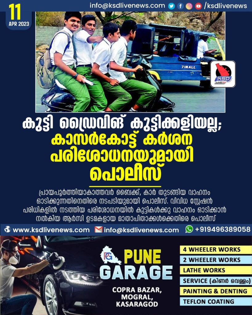 കുട്ടി ഡ്രൈവിങ് കുട്ടിക്കളിയല്ല; കർശന പരിശോധനയുമായി പൊലീസ്
