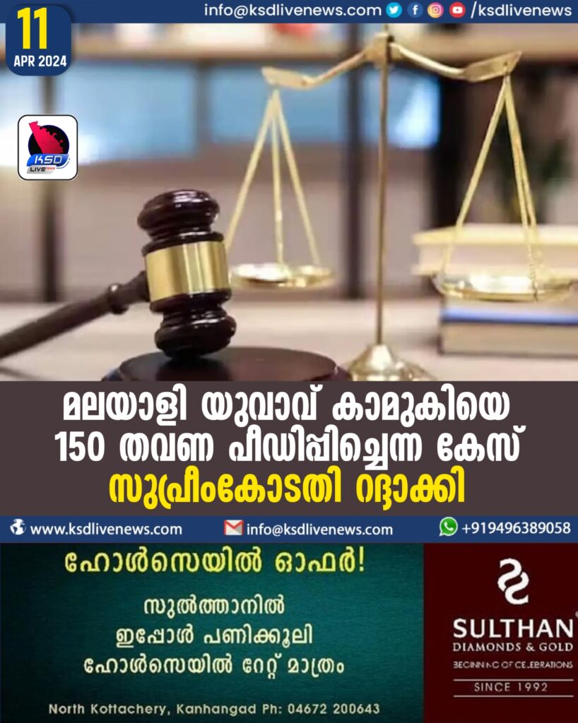 മലയാളി യുവാവ് കാമുകിയെ 150 തവണ പീഡിപ്പിച്ചെന്ന കേസ് സുപ്രീംകോടതി റദ്ദാക്കി