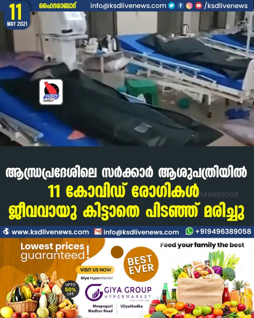 ആന്ധ്രപ്രദേശിലെ സർക്കാർ ആശുപത്രിയിൽ 11 കോവിഡ് രോഗികള് ജീവവായു കിട്ടാതെ പിടഞ്ഞ് മരിച്ചു
