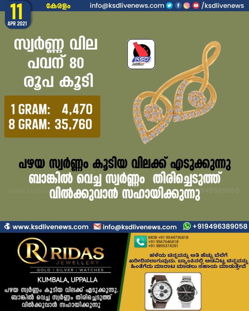 സ്വർണ്ണ വിലയില്‍ വര്‍ധന. പവന് 80 രൂപ കുടി. 35,760 രൂപയായി