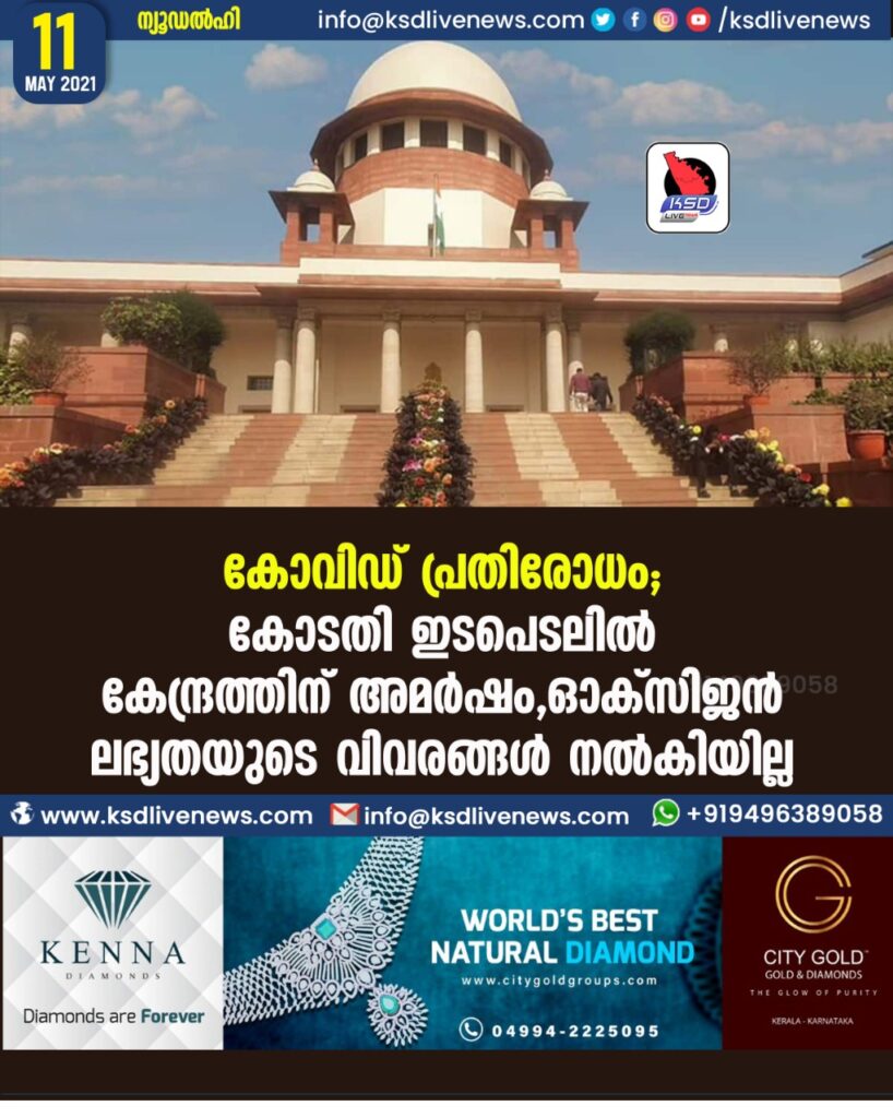 കൊവിഡ് പ്രതിരോധം; കോടതി ഇടപെടലില് കേന്ദ്രത്തിന് അമര്ഷം,ഓക്സിജന് ലഭ്യതയുടെ വിവരങ്ങള് നല്കിയില്ല