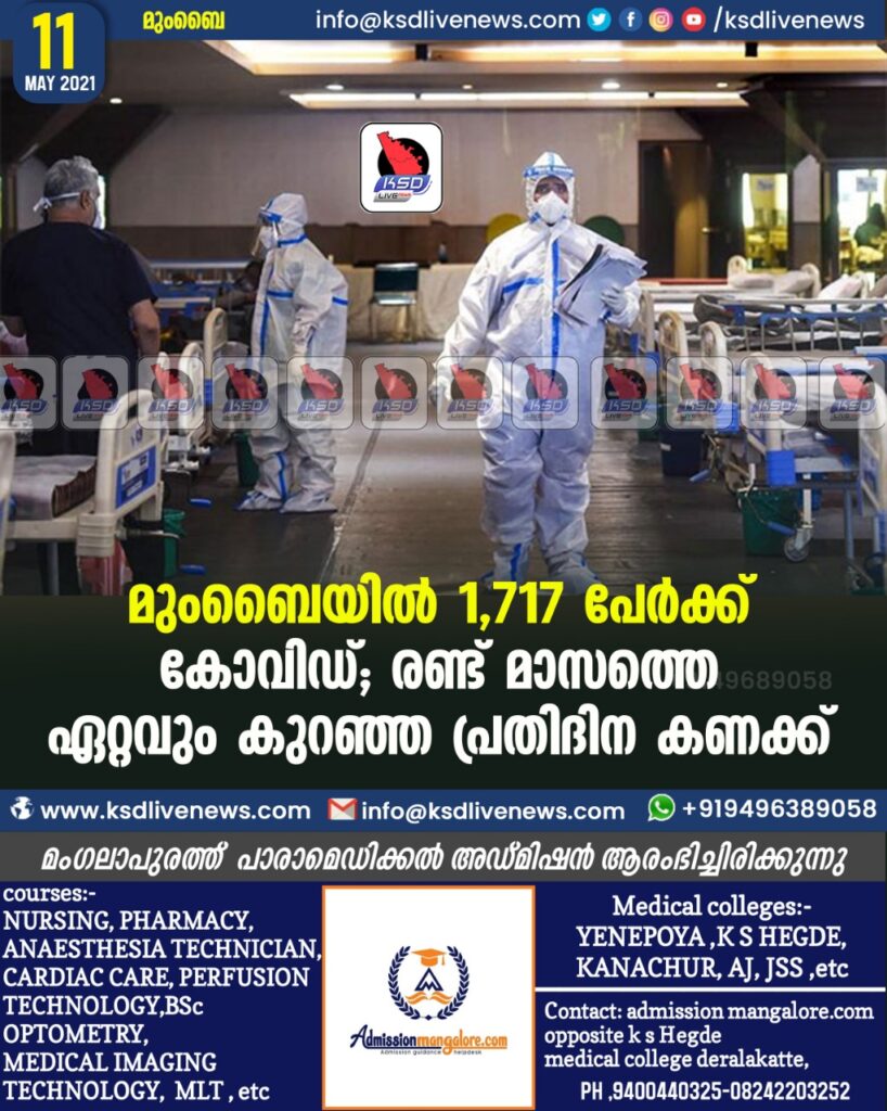 മുംബൈയില് 1,717 പേര്ക്ക് കൊവിഡ്; രണ്ട് മാസത്തെ ഏറ്റവും കുറഞ്ഞ പ്രതിദിന കണക്ക്