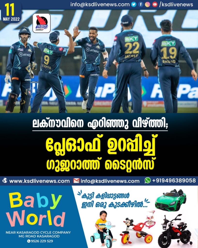 ലക്നൗവിനെ എറിഞ്ഞു വീഴ്ത്തി; പ്ലേഓഫ് ഉറപ്പിച്ച് ഗുജറാത്ത് ടൈറ്റൻസ്