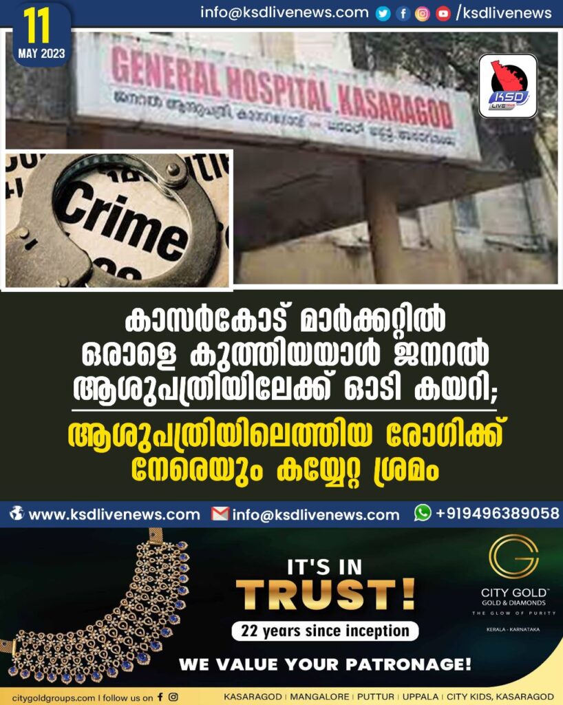 കാസർകോട് മാർക്കറ്റിൽ ഒരാളെ കുത്തിയയാൾ ജനറൽ ആശുപത്രിയിലേക്ക് ഓടി കയറി; ആശുപത്രിയിലെത്തിയ രോഗിക്ക് നേരെയും കയ്യേറ്റ ശ്രമം