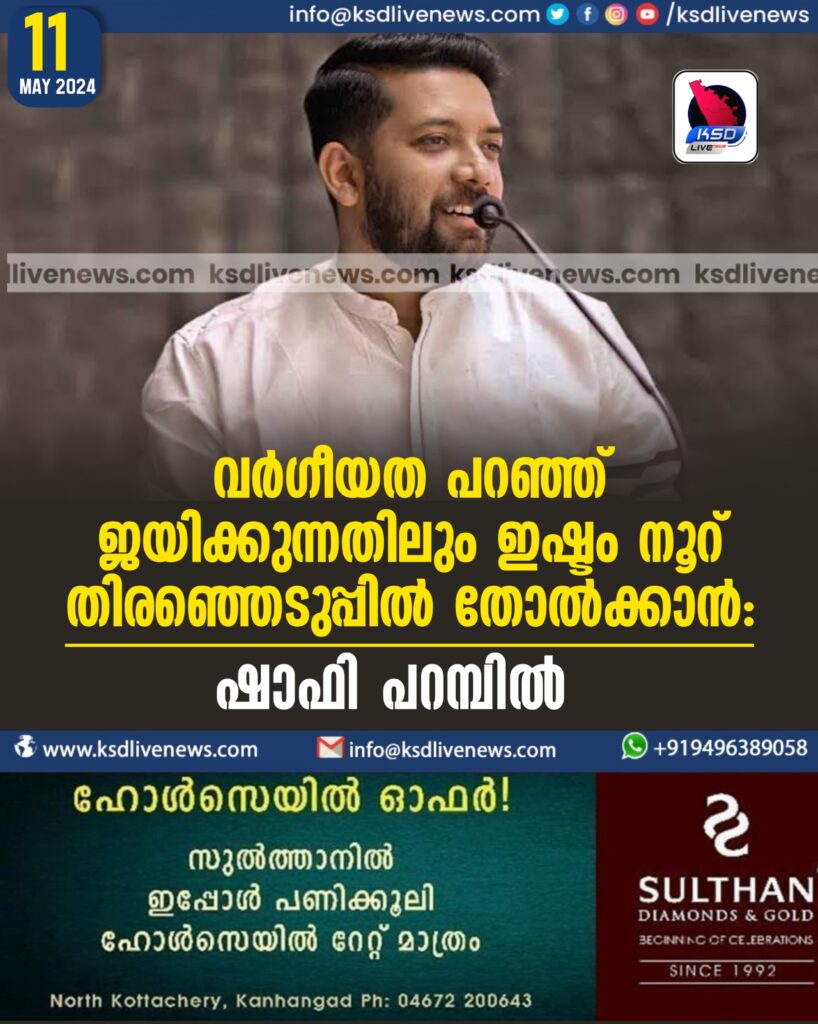 വര്ഗീയത പറഞ്ഞ് ജയിക്കുന്നതിലും ഇഷ്ടം നൂറ് തിരഞ്ഞെടുപ്പില് തോല്ക്കാന്: ഷാഫി പറമ്പില്