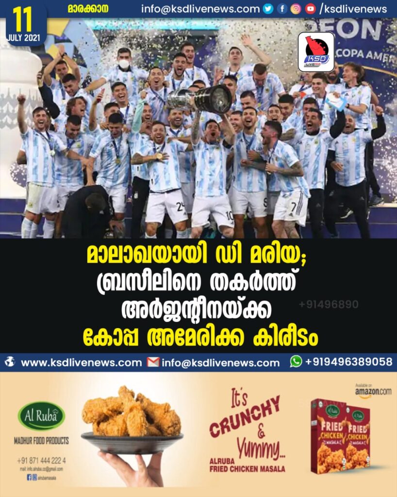 മാലാഖയായി ഡി മരിയ; ബ്രസീലിനെ തകര്ത്ത് അര്ജന്റീനയ്ക്ക് കോപ്പ അമേരിക്ക കിരീടം