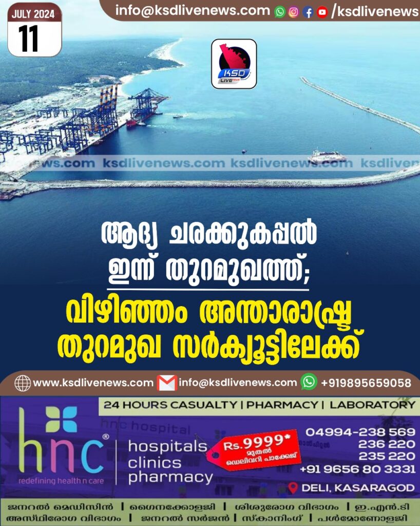 ആദ്യ ചരക്കുകപ്പൽ ഇന്ന് തുറമുഖത്ത്; വിഴിഞ്ഞം അന്താരാഷ്ട്ര തുറമുഖ സർക്യൂട്ടിലേക്ക്