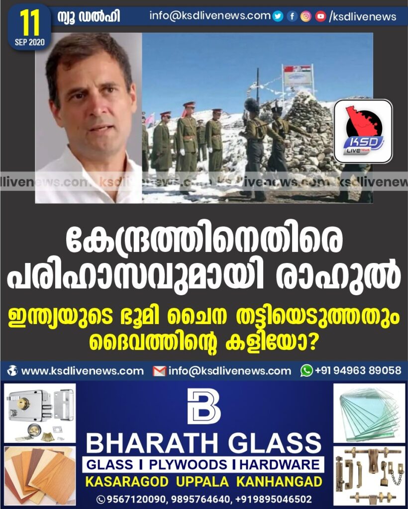 ന്യൂഡല്‍ഹി: ചൈന ഇന്ത്യയുടെ ഭൂമി തട്ടിയെടുത്തെന്ന് ആവര്‍ത്തിച്ച്‌ കോണ്‍ഗ്രസ് നേതാവ് രാഹുല്‍ഗാന്ധിയുടെ ട്വീറ്റ്. തട്ടിയെടുത്ത ഭൂമി കേന്ദ്രസര്‍ക്കാര്‍ എപ്പോള്‍ തിരിച്ചുപിടിക്കുമെന്നാണ് അദ്ദേഹത്തിന്റെ ചോദ്യം. അതോ ഇതും ദൈവത്തിന്റെ കളിയെന്ന് വിശേഷിപ്പിക്കുമോയെന്നും രാഹുല്‍ പരിഹസിക്കുന്നു. അതേസമയം അതിര്‍ത്തിയിലെ സംഘര്‍ഷം പരിഹരിക്കാന്‍ ഇന്ത്യയും ചൈനയും തമ്മില്‍ ധാരണയായി. സേന പിന്മാറ്റം വേഗത്തില്‍ വേണമെന്ന് വിദേശകാര്യ മന്ത്രിമാരുടെ ചര്‍ച്ചയിലാണ് തീരുമാനമായത്. സ്ഥിതി സങ്കീര്‍ണമാക്കുന്ന നടപടി പരസ്പരം ഒഴിവാക്കുകയും ഒപ്പം സേനകള്‍ തമ്മില്‍ ചര്‍ച്ച തുടരാനുമാണ് നിലവിലെ ധാരണ. രണ്ടു സേനകള്‍ക്കുമിടയില്‍ ഉചിതമായ അകലം നിലനിര്‍ത്തണമെന്നും സംഘര്‍ഷത്തിന് അയവ് വരുത്തണമെന്നും ഇരു രാജ്യങ്ങളും സംയുക്ത പ്രസ്താവന നടത്തി. രണ്ടര മണിക്കൂര്‍ നീണ്ട ചര്‍ച്ചകള്‍ക്കൊടുവിലാണ് സംയുക്ത പ്രസ്താവന പുറത്തിറക്കിയത്. മൂന്നു മാസത്തില്‍ ഇതാദ്യമായാണ് ഇരു രാജ്യങ്ങളും സംയുക്ത പ്രസ്താവന നടത്തുന്നത്.
