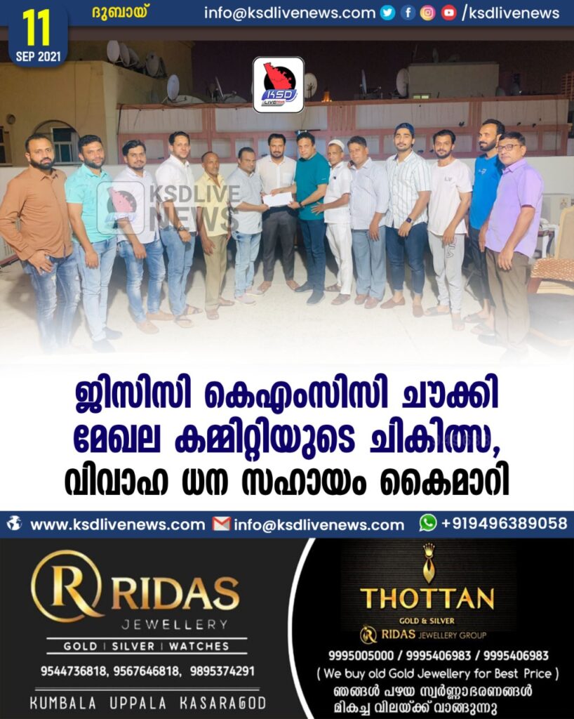ദുബായ്‌: വർക്കിംഗ്‌ പ്രസിഡന്റ്‌ കുഞ്ഞാമു കീഴൂരിന്റെ അധ്യക്ഷതയിൽ തോട്ടിൽ അബ്ദുറഹ്മാൻ വസതിയിൽ നടന്ന ചടങ്ങിൽ സാമ്പത്തികപരമായും ശാരീരിക പരമായും കഷ്ടത അനുഭവിക്കുന്ന കല്ലങ്കയിലെ ഒരു വ്യക്തിയുടെ രോഗ ചികിത്സയ്ക്കും മകളുടെ വിവാഹത്തിനുമുള്ള ധന സഹായം സംഘടനയുടെ ജനറൽ സെക്രട്ടറി മുഹമ്മദ് കുഞ്ഞി